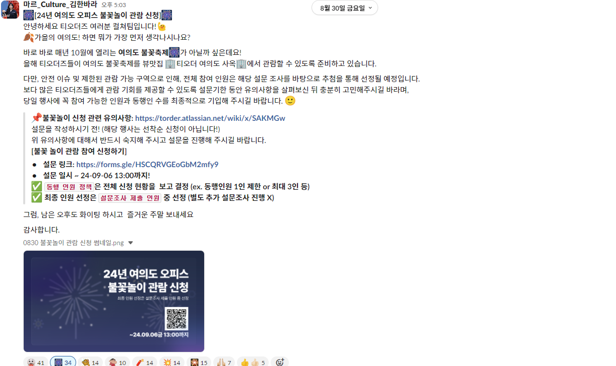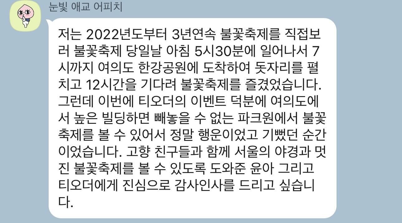 티오더즈는 24년 여의도 불꽃축제를 어떻게 즐겼을까요? 그 준비과정부터 행사 당일에 생생한 후기까지, 지금부터 살펴보시죠!