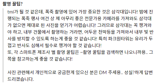 윤아님은 행사방 채널에도 촬영 꿀팁을 남겨주셨어서 따로 촬영 꿀팁까지 문의드려봤습니다.