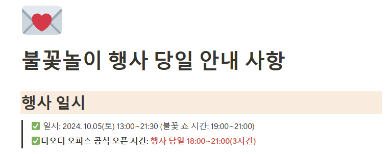 아래가 그 유의 사항인데요. 혹 이후 불꽃축제 관람 이벤트를 기획하는 다른 누군가에게 도움이 되길 바라요😊