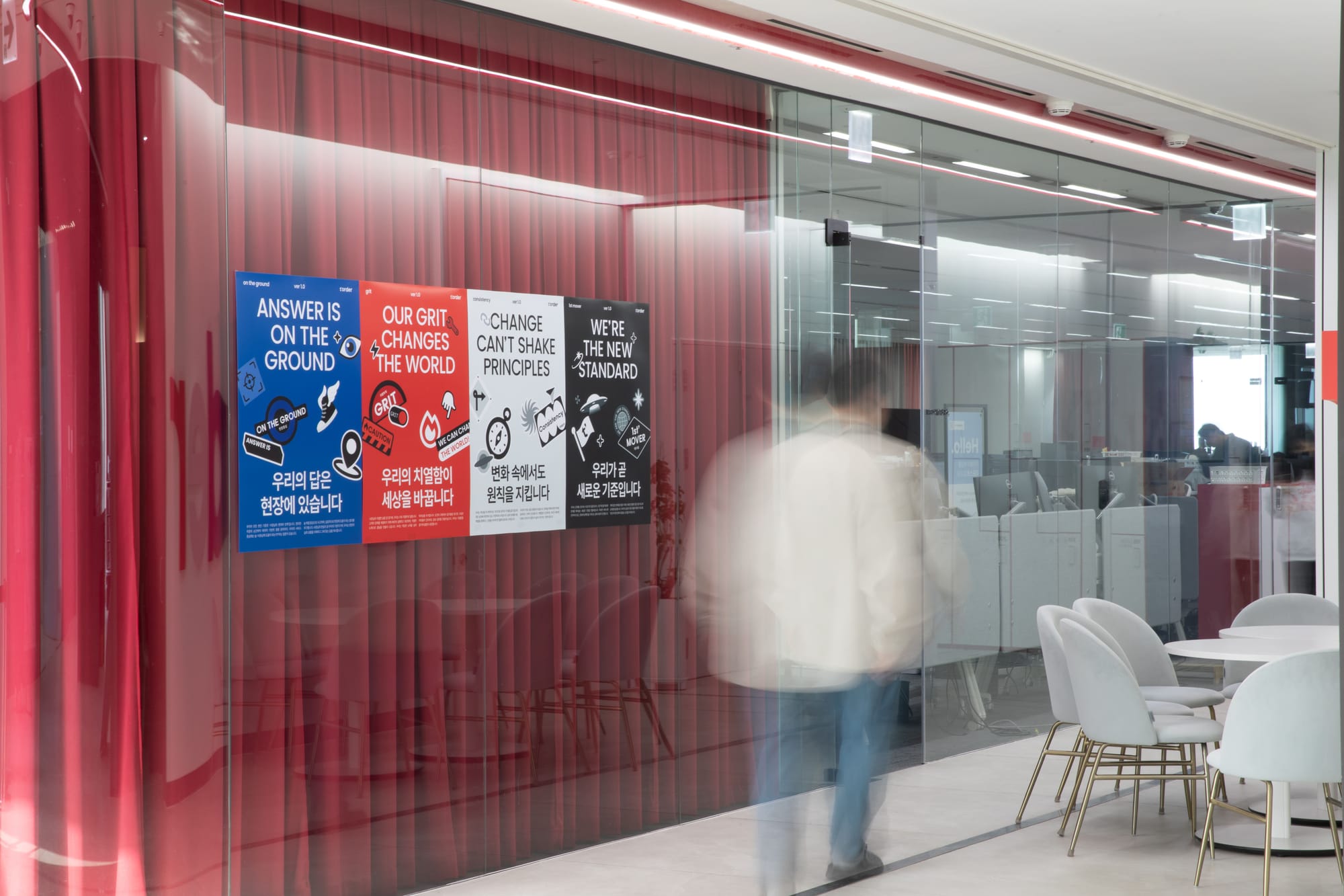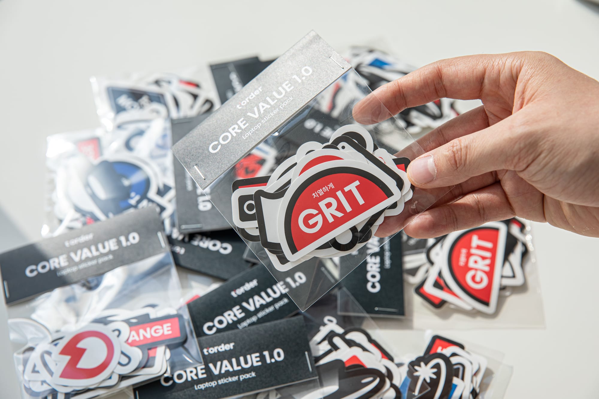 이번에 발표하는 티오더 핵심가치 1.0은 티오더 창립 이래 처음으로 공표되는 핵심가치인만큼, 모든 구성원들이 곳곳에서 핵심가치를 보고 느낄 수 있도록 캠페인을 진행하였습니다. 사무실 공간 어디서든 볼 수 있게 여기저기 포스터를 부착하고, 구성원들에게 스티커팩을 하나씩 나누어주며, 핵심가치가 한 명 한 명에게 더 의미 있게 와닿을 수 있기를 바랐습니다.