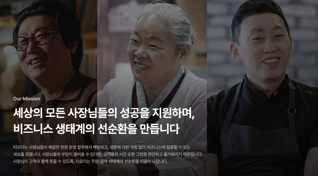 우리는 업계를 선도하는 티오더의 일원으로서, 시장 혁신을 목표로 한계를 뛰어넘는 새로운 기준을 만들어냅니다. 우리는 익숙한 서비스에 안주하지 않고, 현장에 임팩트를 줄 수 있는 일에 과감히 도전합니다. 우리의 성공이 다른 이들의 목표가 되도록, 혁신의 최전선에서 끝없는 도전을 이어갑니다.