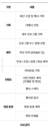 행사 당일 무대 환경 등을 조율하거나 기타 부스를 운영할 인력들을 섭외할 행사 대행사를 알아봐야만 했어요.
