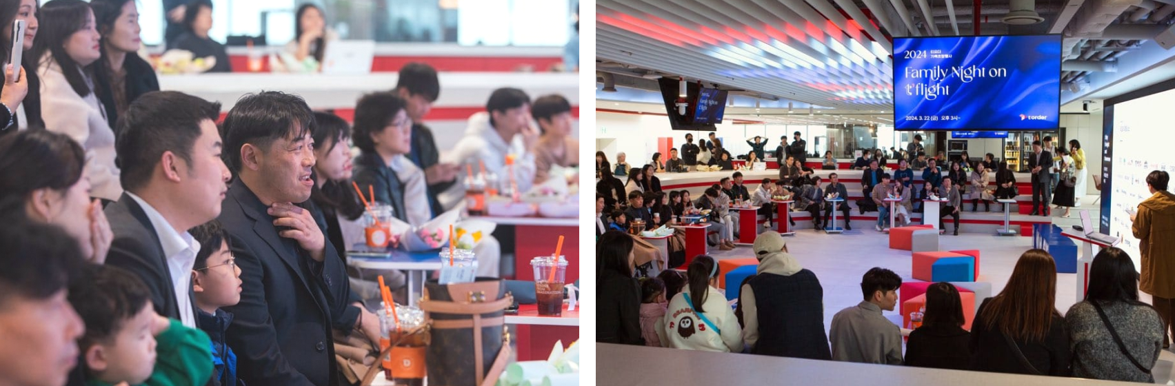 지난 24년 3월 22일, 티오더의 첫 가족 초청행사가 여의도 콘래드호텔에서 열렸습니다. 티오더가 여태까지 걸어온 길을, 그리고 나아갈 방향을 우리의 가족들께 보여드리고 싶었기 때문입니다. 이번 행사에는 임직원과 가족분들까지, 약 550명의 게스트가 함께하며 자리를 빛내주었습니다.