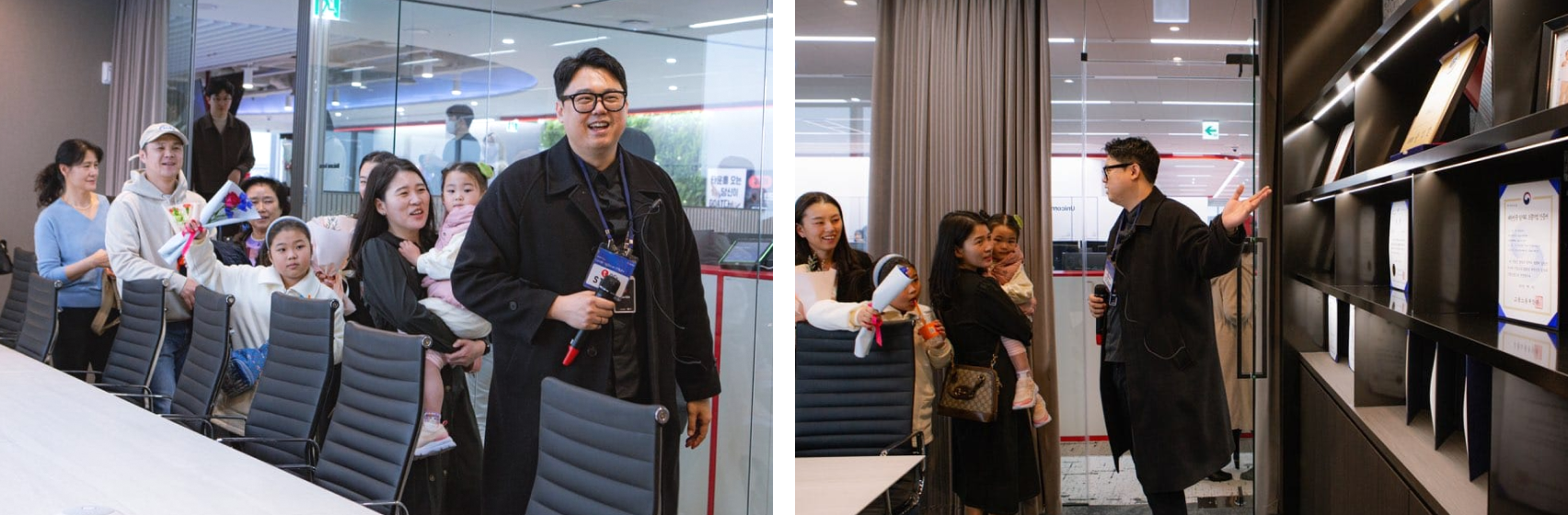 이번 가족 초청행사의 첫 번째 콘텐츠는 바로 오피스 투어입니다.
