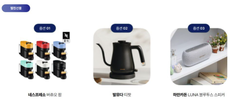 ▲취향에 따라 한 가족당 하나의 웰컴 선물을 품에 안고 돌아가실 수 있도록 ‘네스프레소 커피 머신’, ‘발뮤다 티팟’, ‘하만카돈 블루투스 스피커’를 이번 행사에 참석한 가족 수만큼 준비하였어요.