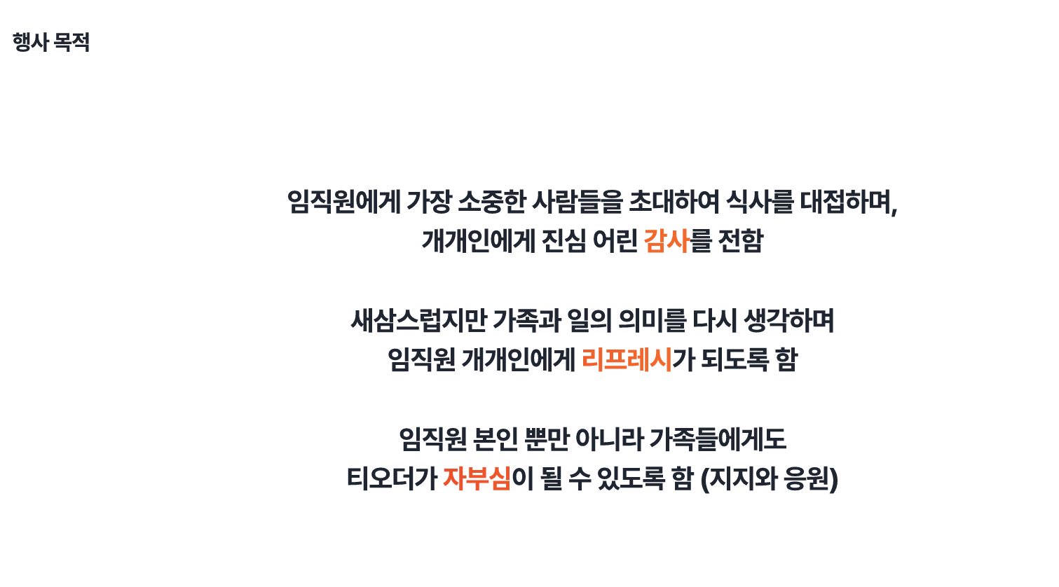 오늘은 이러한 티오더에 첫번째 가족초청 행사의 준비과정부터 진행까지. 그날의 생생한 기억과 즐거운 순간들을 공유드리고자 합니다.