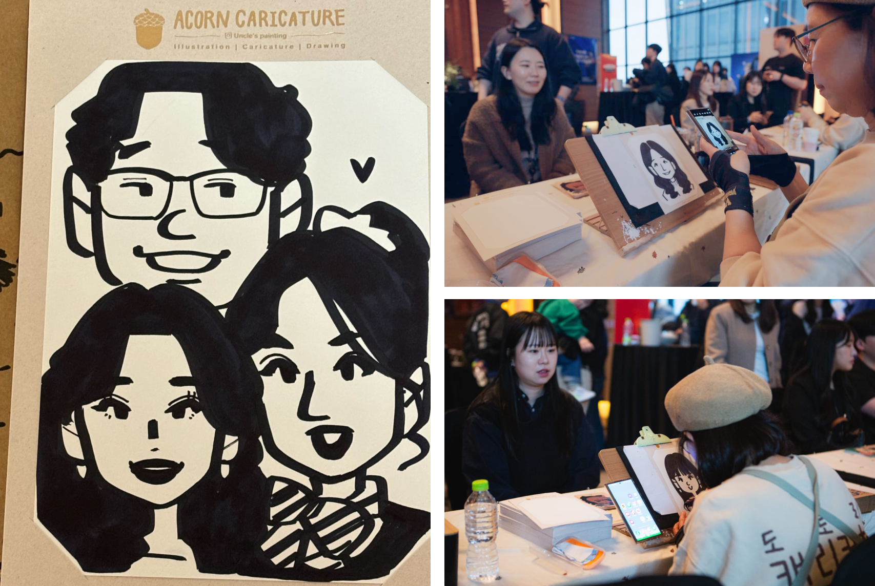 가족 초청 행사를 위해 커스텀된 프레임과 함께 기념 사진을 촬영할 수 있는 📸포토부스, 행사 당일의 추억을 담을 수 있는 🎨캐리커쳐 부스를 준비했습니다.