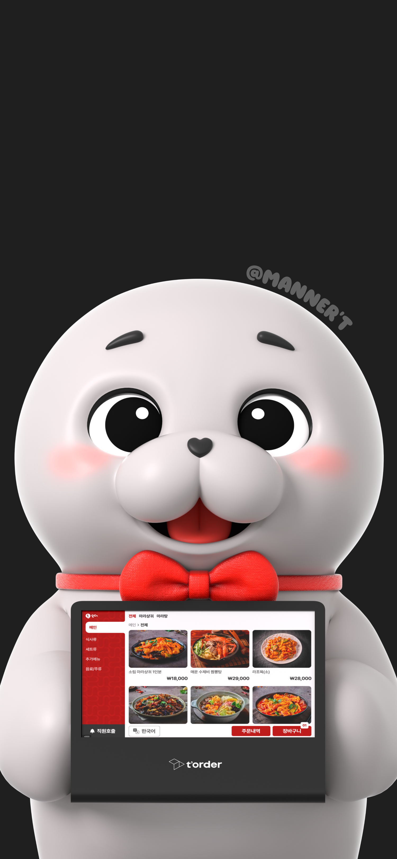 티오더 공식 캐릭터 매너티 휴대폰 배경화면과 갤럭시워치 배경화면, 애플워치 배경화면을 공유 드립니다 😙