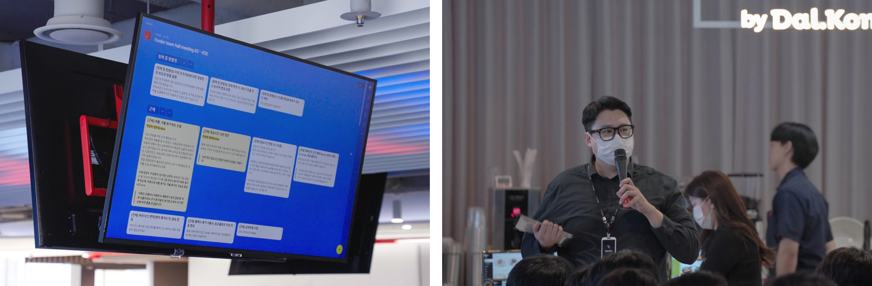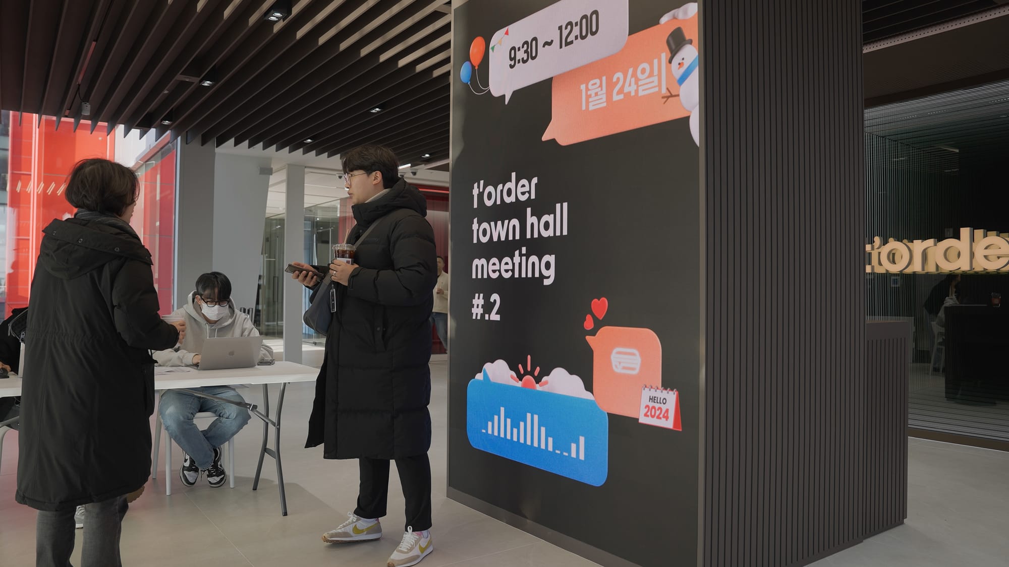 티오더 구성원들은 타운홀 곳곳에 비치된 QR코드를 통해 ‘근무하는 환경, 업무 몰입에 방해가 되는 사안, 타 팀에 궁금한 이야기, 혹은 티오더에서 꼭 함께 만들어가고 싶은 문화’에 대한 자유로운 의견을 공유할 수 있습니다.