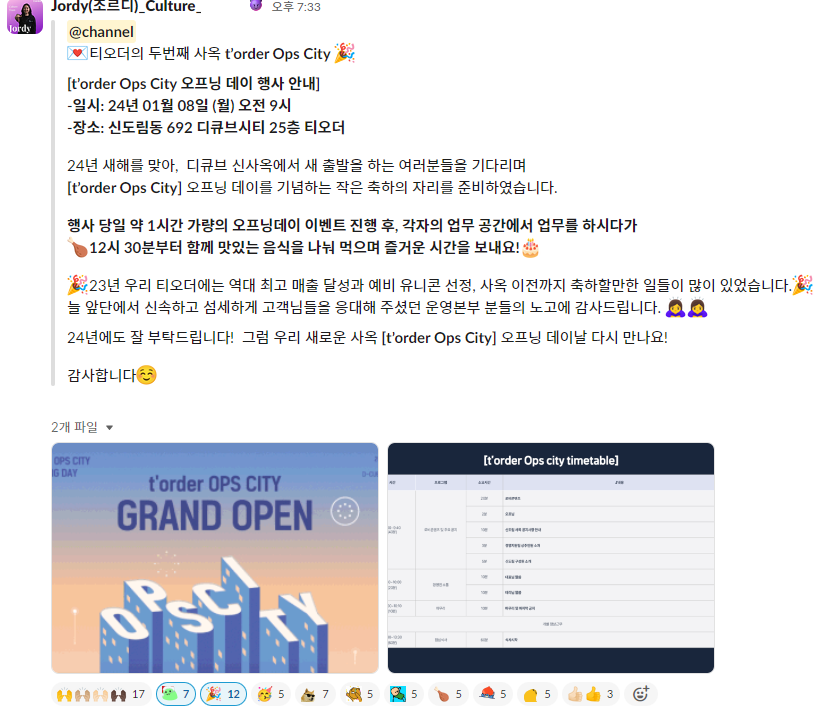 이렇듯 빠르게 성장하고 있는 티오더는 지난 1월 8일에 제2사옥 “OPS CITY”를 오픈하였습니다. OPS CITY는 Operation city라는 뜻으로, 앞으로 이곳에서 티오더의 운영과 고객 경험의 처음과 끝을 관장하며 고객 중심의 소통을 강화할 것입니다.