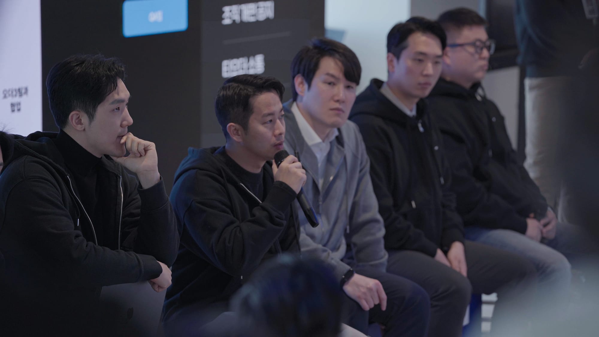 이러한 구성원들의 물음에 티오더는 HR 총괄 이드님의 조직개편안 설명과 더불어 ‘조직개편 간담회’로 답하였습니다. 이번 조직개편 간담회에서는 모든 경영진들이 타운홀 앞으로 나와 실시간으로 임직원들에게 질의응답을 받았습니다.
