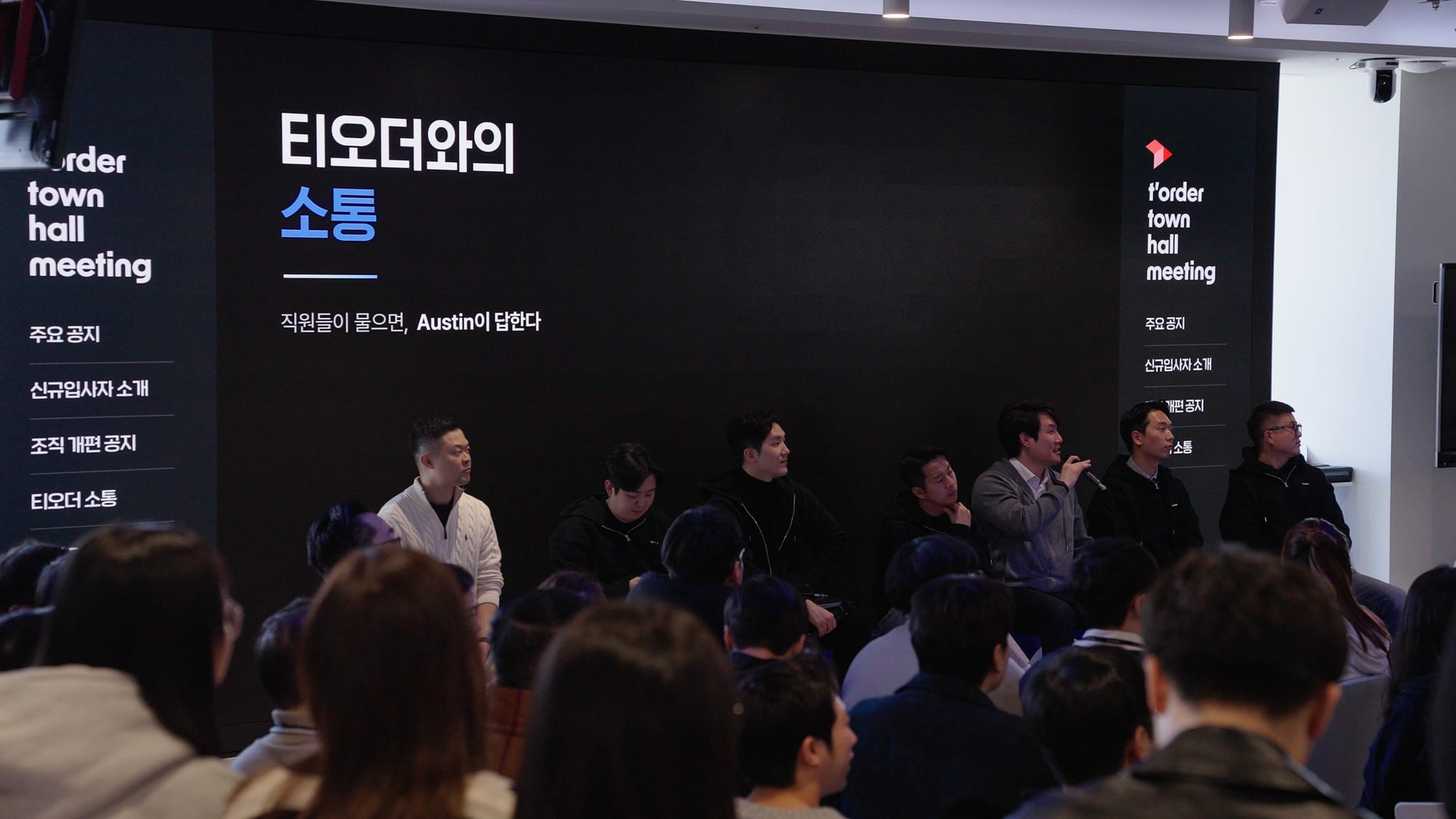 실적 공유 이후, 드디어 티오더 타운홀의 메인 시간입니다. 바로 “티오더와의 소통” 자리인데요.